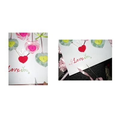 Step-4Make some cut marks at the end portion of your card and sew out ribbons with hearts slide. And you can add some embellishments like butterfly, small ring at the end of the wool string.